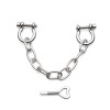 Embalagem: Caixa de papel contendo 01 unidade da algema de pulso ou tornozeleira em aço Hand Luxury Two acondicionada em saquinho com cadarço. Acompanha manual ilustrado da linha Metal Sex.