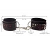 Possui fivelas com regulagem que permite ajuste perfeito e confortável para os punhos. Ambos os braceletes são presos por um mosquetão que permite a soltura dos mesmos transformando sua algema em pulseiras individuais.