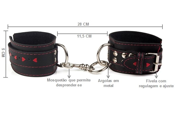 A algema em couro Heart se destaca pela sua qualidade e segurança. Produto altamente resistente com acabamento em formato de coração. Os detalhes ficam por conta da parte de metal que enobrece o produto.
