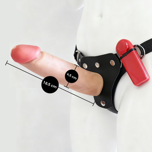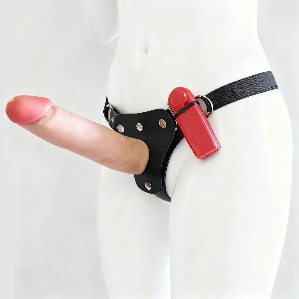 Encaixe a base da prótese na abertura central da cinta até que esteja firme. Posicione a cinta na região pélvica e ajuste as fivelas até sentir que o acessório está seguro e confortável junto ao corpo.