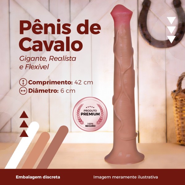Big Horse Pênis Grande de Cavalo Realísta Gigante 42cm x 6cm Marrom - PR127M