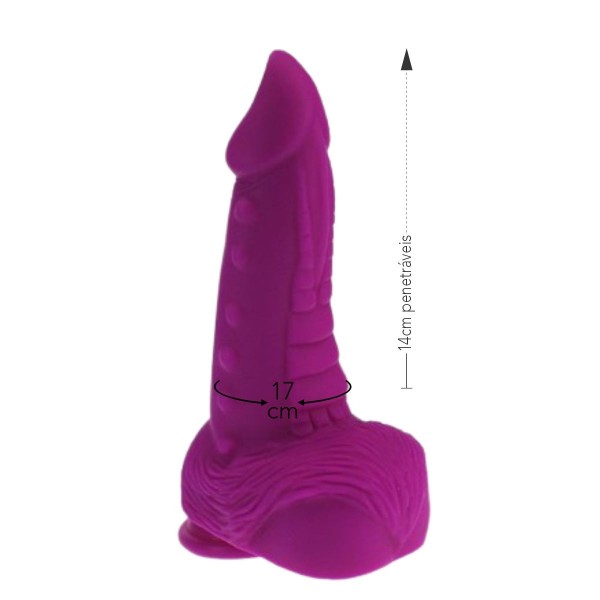 Pênis Prótese 14 x 6 cm com Ventosa e Escroto X-Men Roxo - 6845